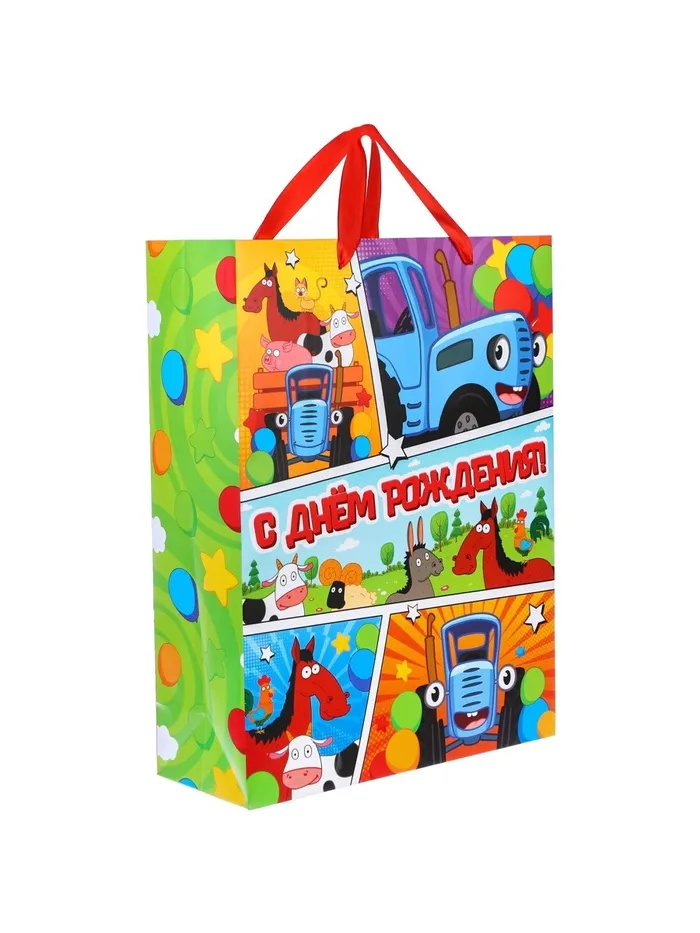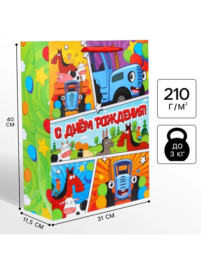 Пакет подарочный «С днём рождения»,31х40х11.5 см, упаковка, Синий трактор — Характеристики