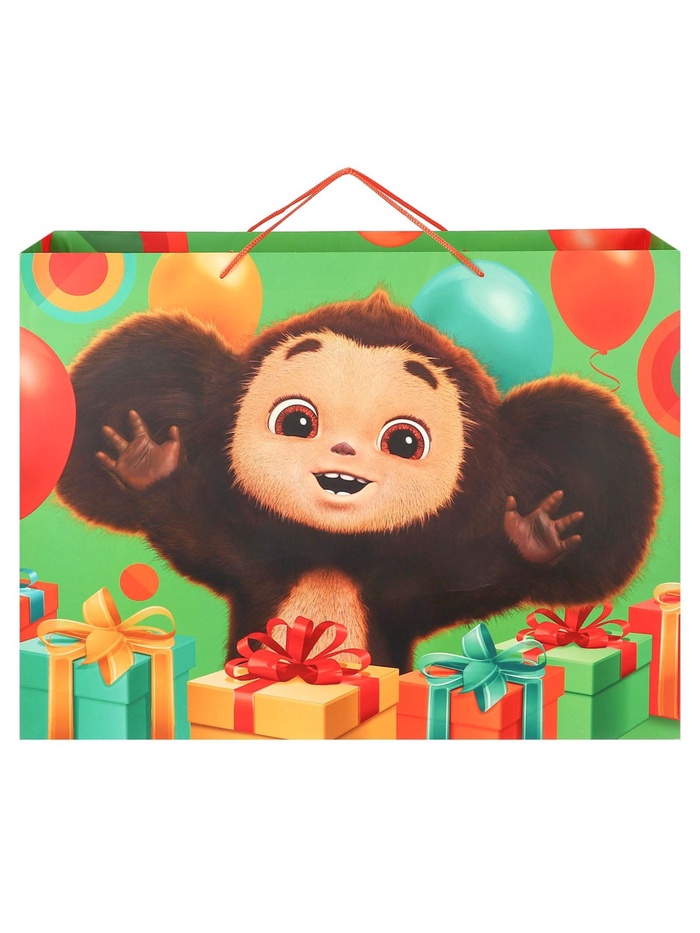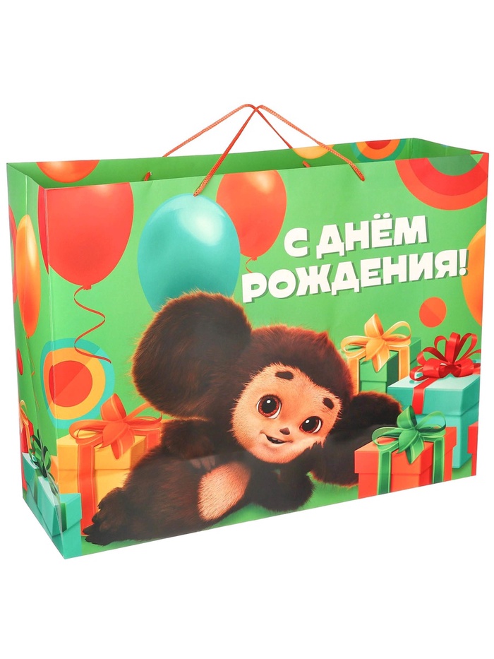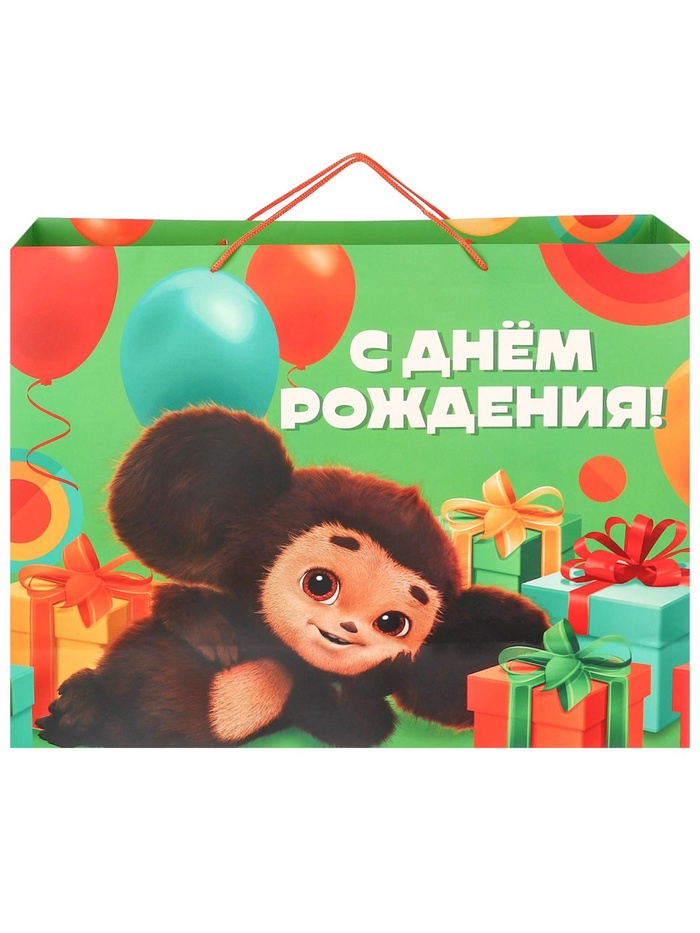 Пакет подарочный «С днём рождения»,61х46х20 см, упаковка, Чебурашка — Характеристики