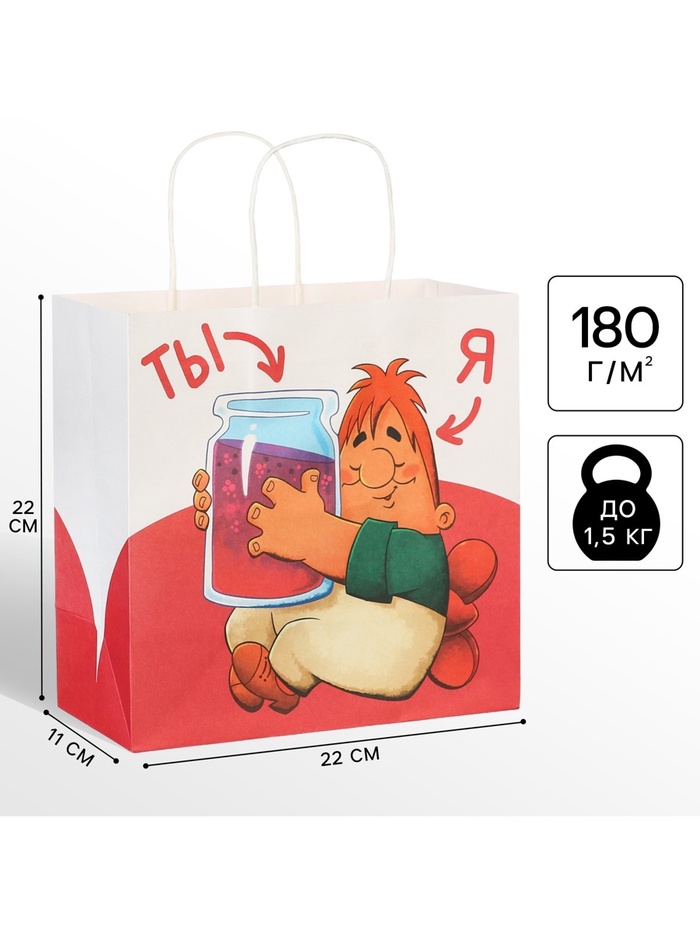 Пакет подарочный «С днём Варенья!», 22×22×11 см, крафт, упаковка, Малыш и Карлсон — Характеристики