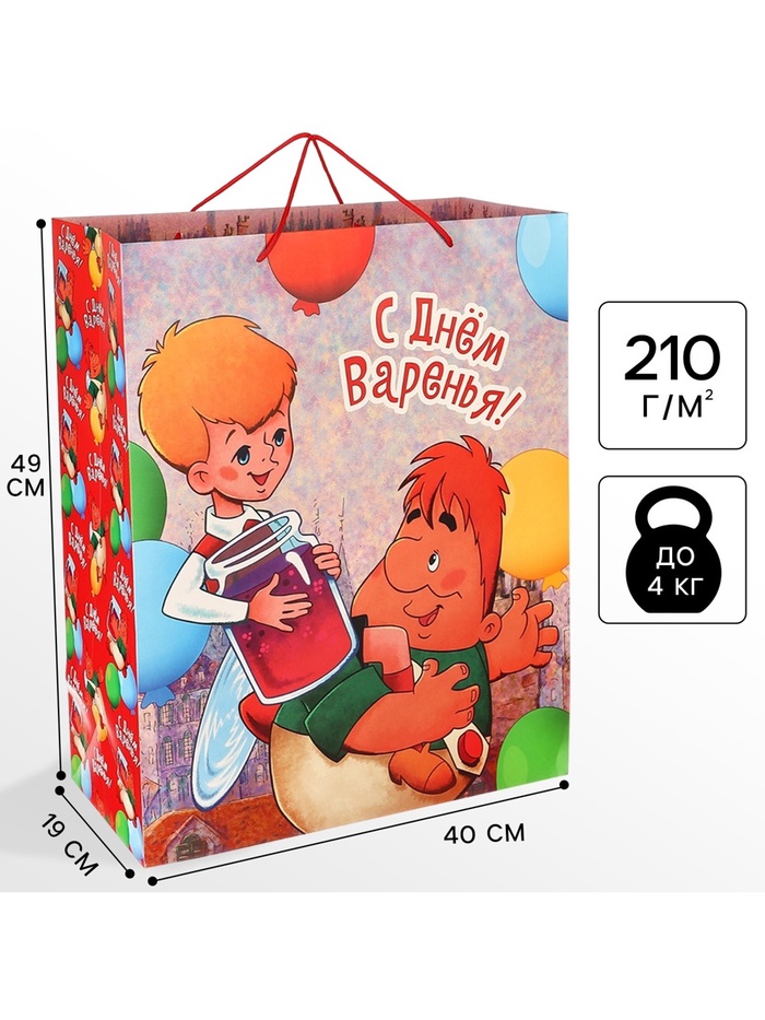 Пакет подарочный «С днём Варенья!», 40×49×19 см, упаковка, Малыш и Карлсон — Характеристики