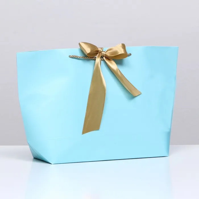 Пакет подарочный с лентой 30×27.5×12 см «Голубой» — Характеристики