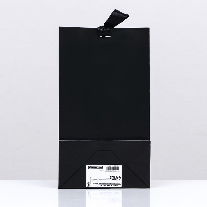 Пакет подарочный с лентой «Чёрный», ламинированный вертикальный, 13×23×7 см — Характеристики