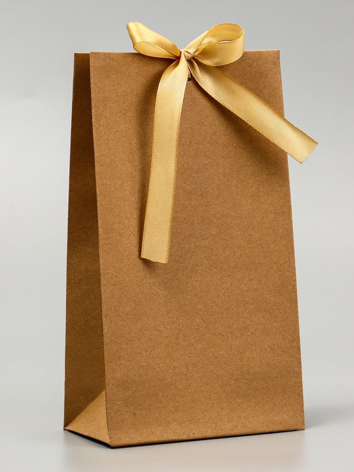 Пакет подарочный с лентой «Коричневый» 13×23×7 см, 1 шт. — Характеристики