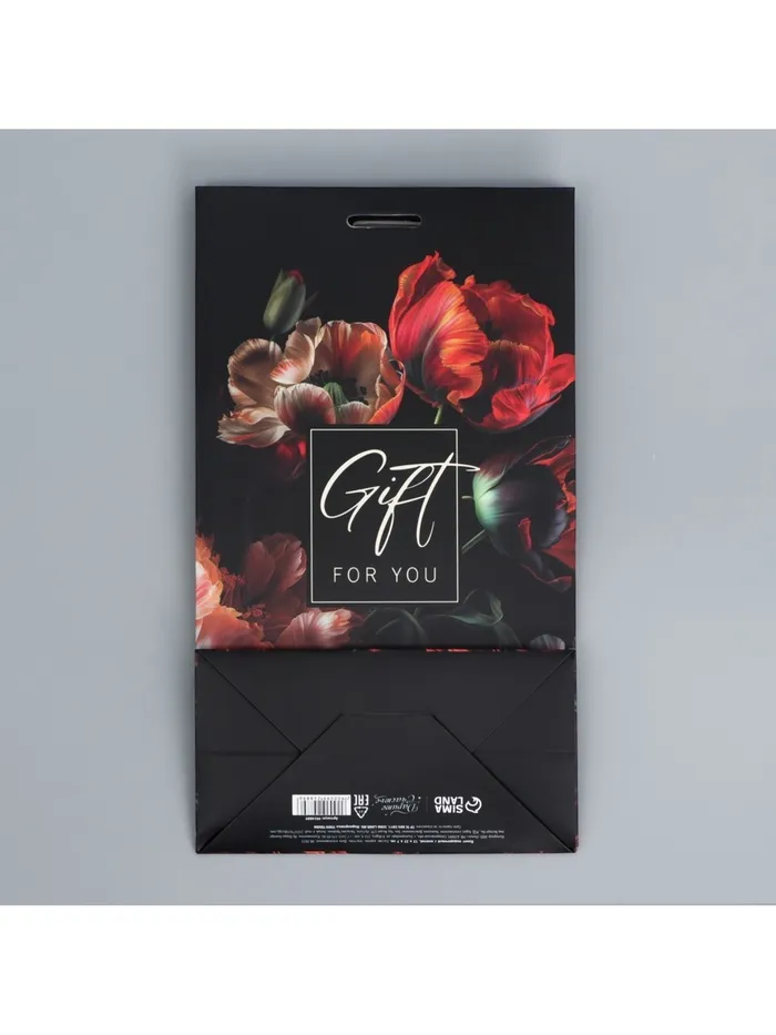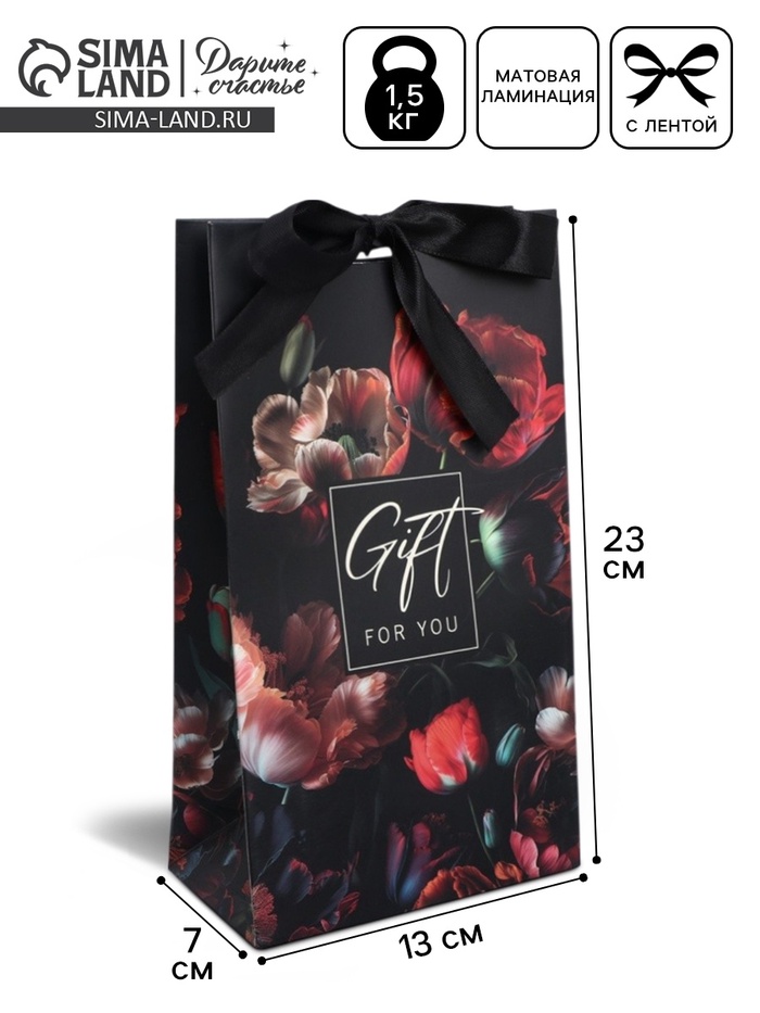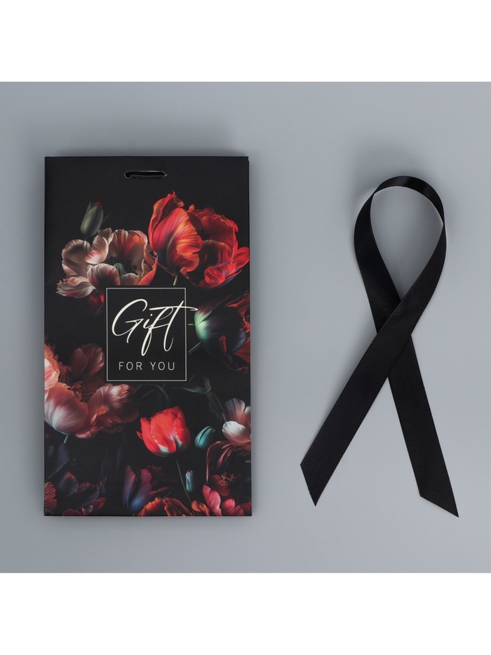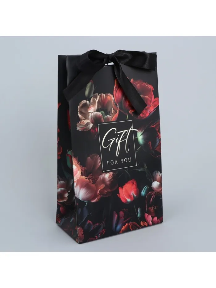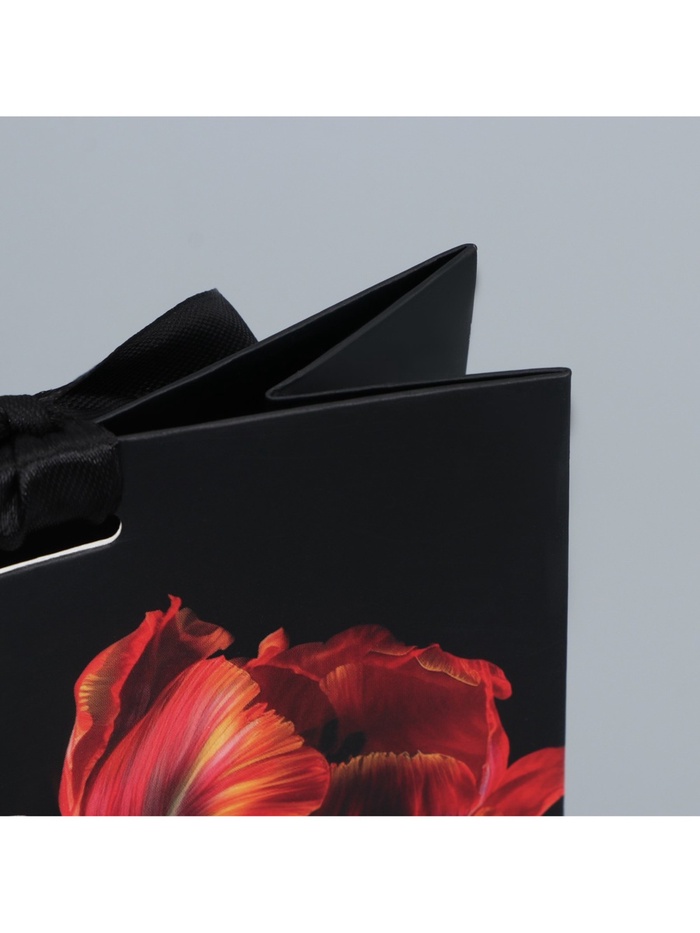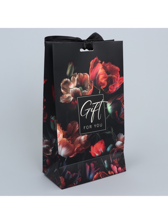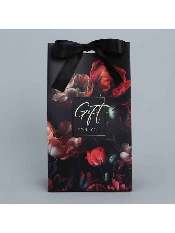 Пакет подарочный с лентой, упаковка, «Ночные цветы», 13 х 23 х 7 см — Характеристики