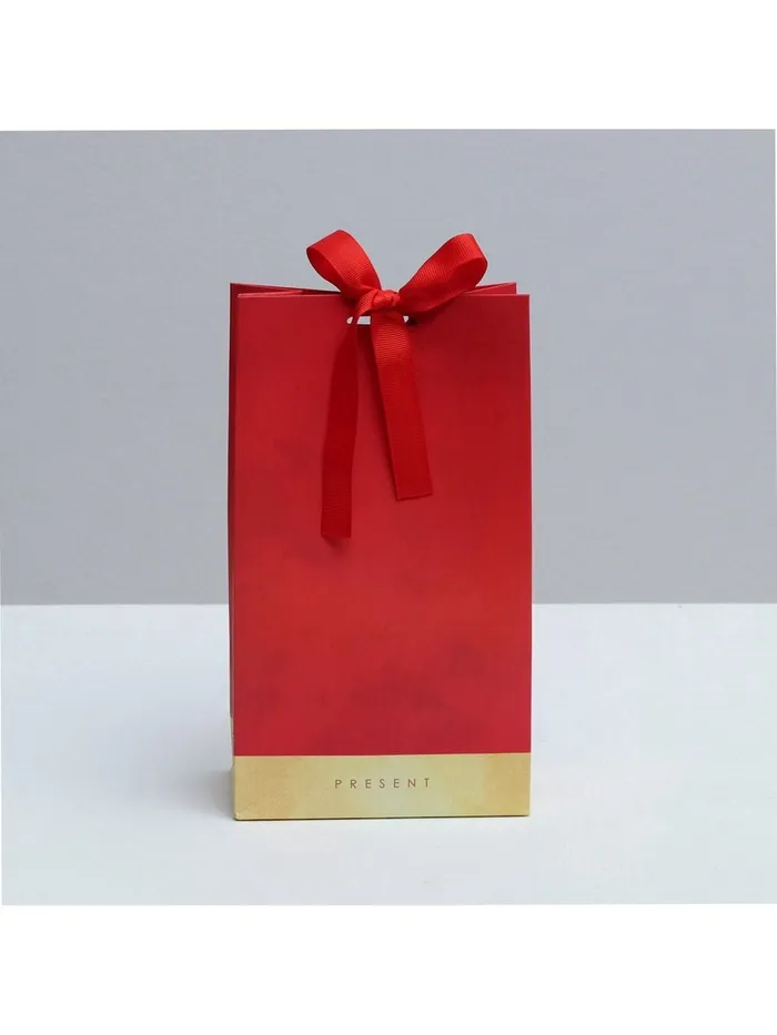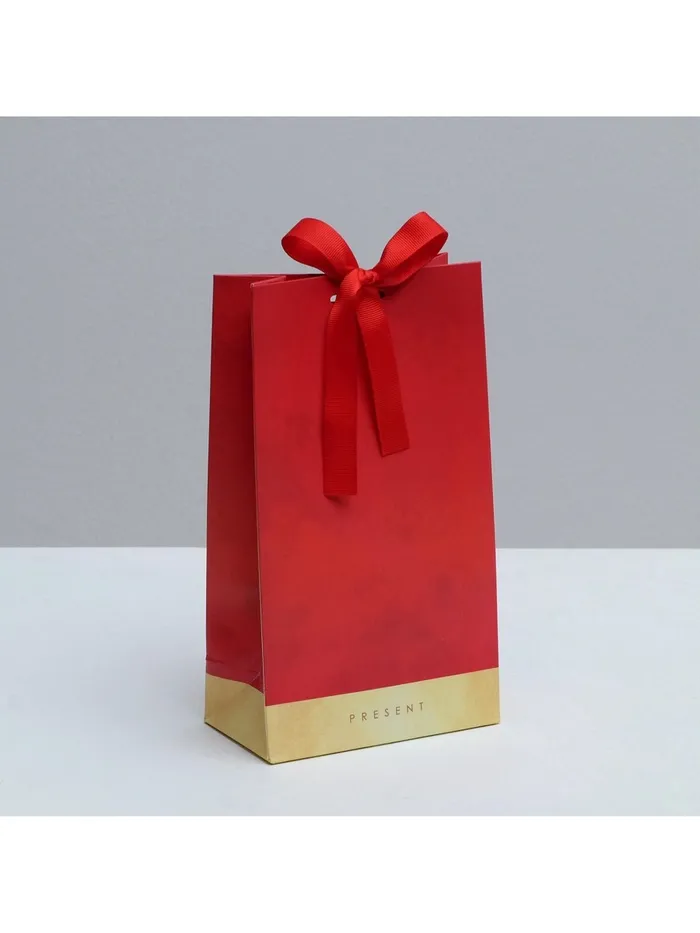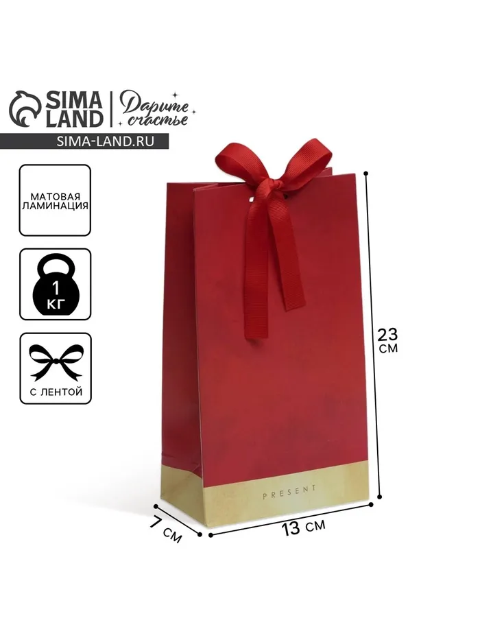 Пакет подарочный с лентой, упаковка, «Present», 13 х 23 х 7 см — Характеристики