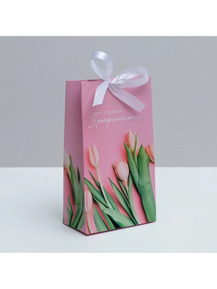 Пакет подарочный с лентой, упаковка, «Самой прекрасной», 13 х 23 х 7 см — Характеристики