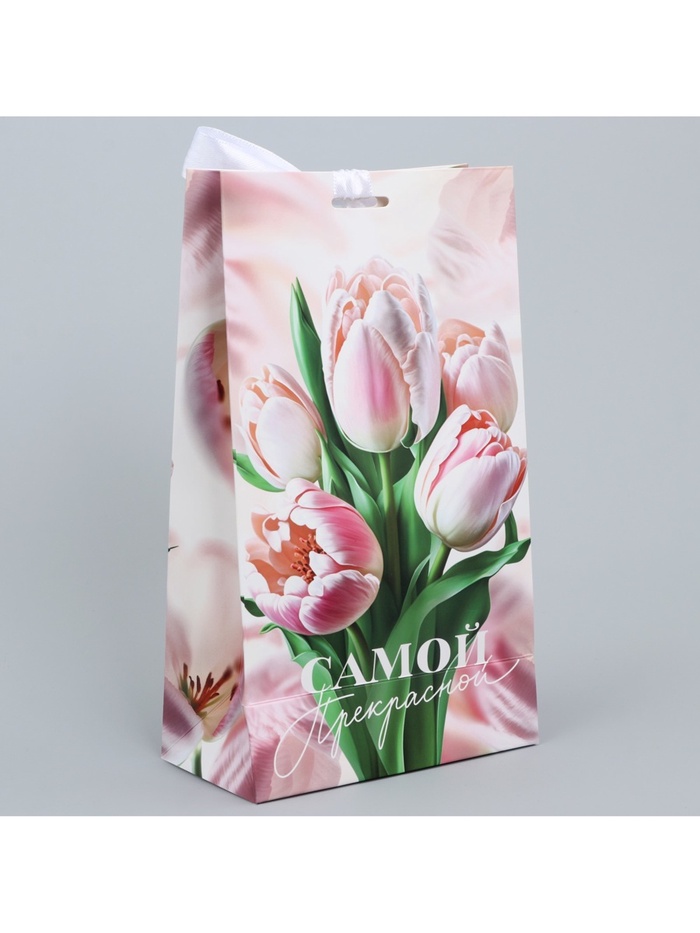 Пакет подарочный с лентой, упаковка, «Самой прекрасной», 13×23×7 см — Характеристики