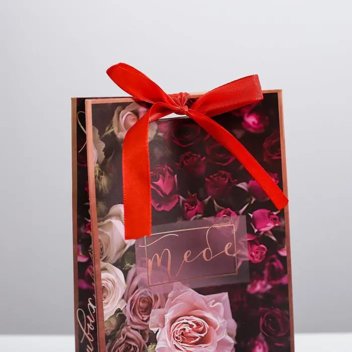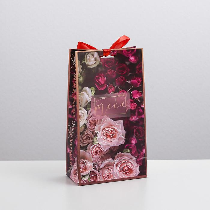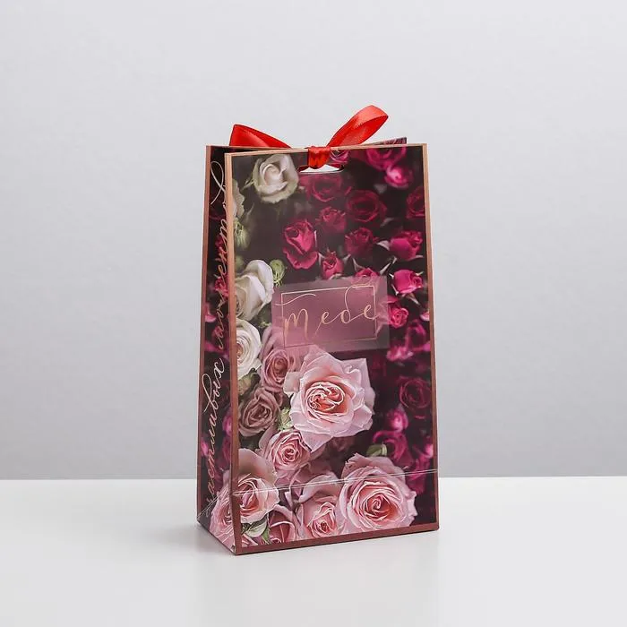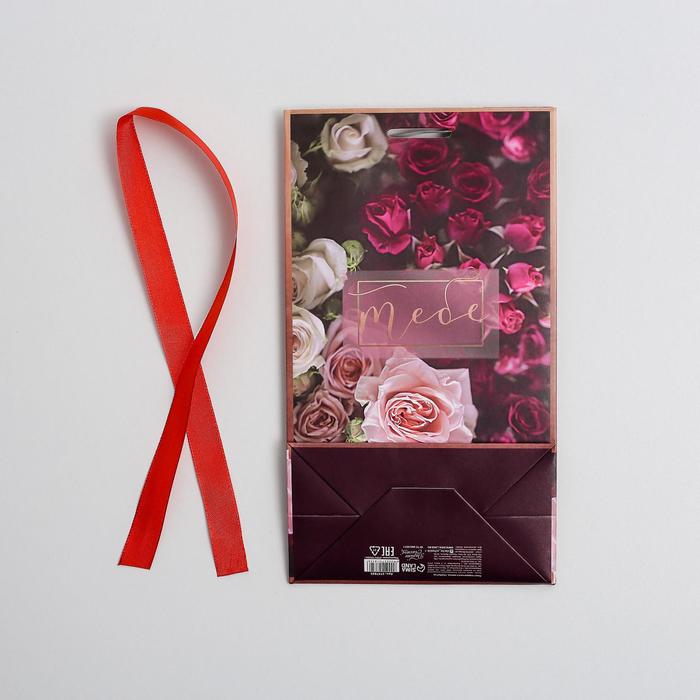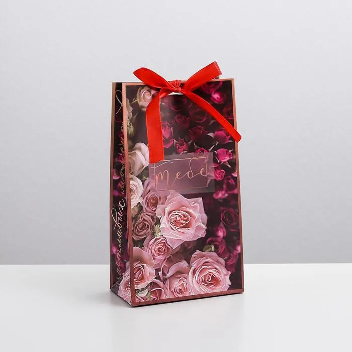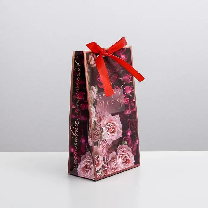 Пакет подарочный с лентой, упаковка, «Счастливых моментов», 13 х 23 х 7 см — Характеристики