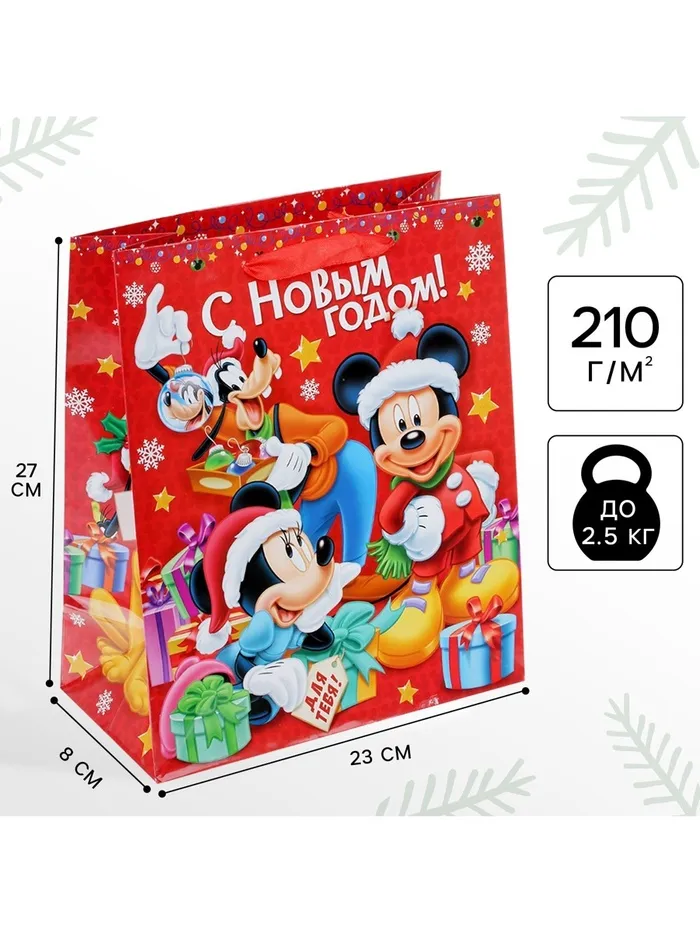 Пакет подарочный «С Новым годом!», 23×27х8 см, упаковка, Микки Маус — Характеристики