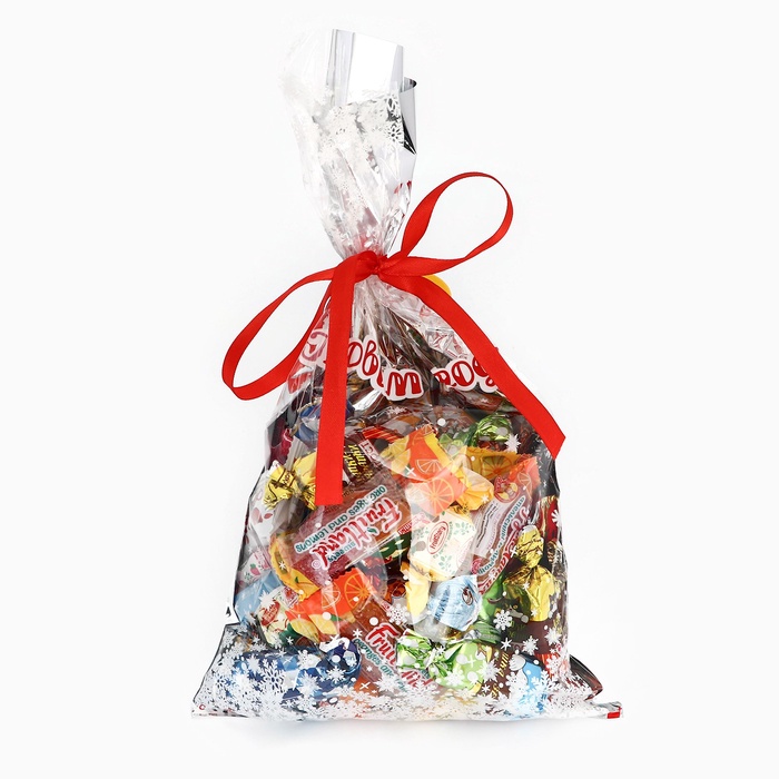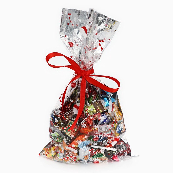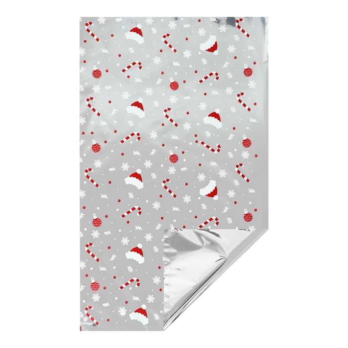 Подарочный новогодний пакет металлизированный с праздничным рисунком – идеальное решение для оформления сладких подарков!