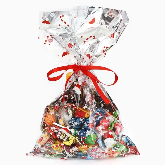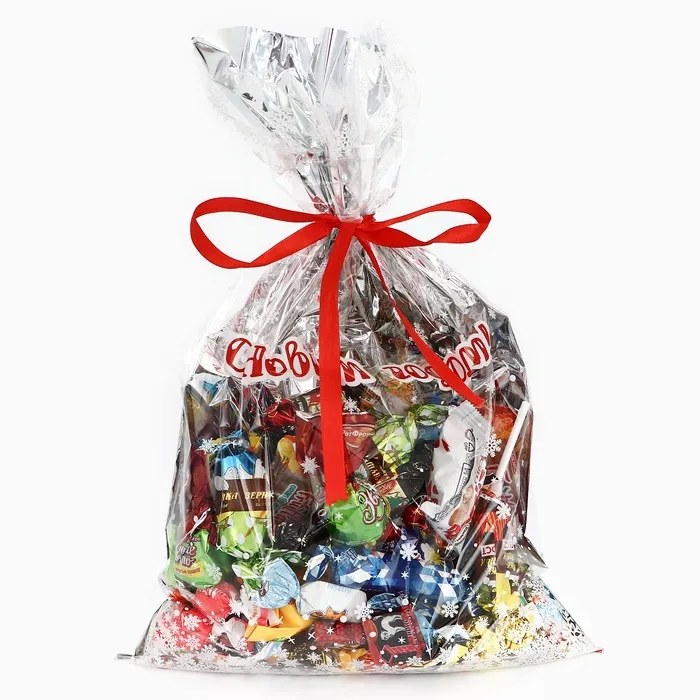 Подарочный новогодний пакет металлизированный с праздничным рисунком – идеальное решение для оформления сладких подарков!