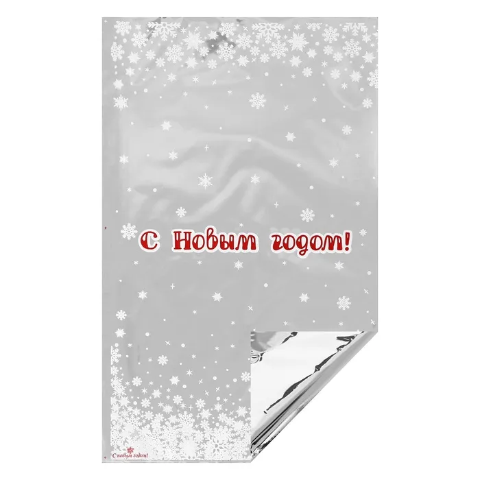 Яркая глянцевая поверхность с переливающимся эффектом добавляет праздничного настроения, а оригинальные новогодние изображения – снежинки, ёлочки, игрушки – делают упаковку стильной и атмосферной.