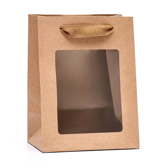 Пакет подарочный, с окном, 20×15×10 см, крафт — Характеристики
