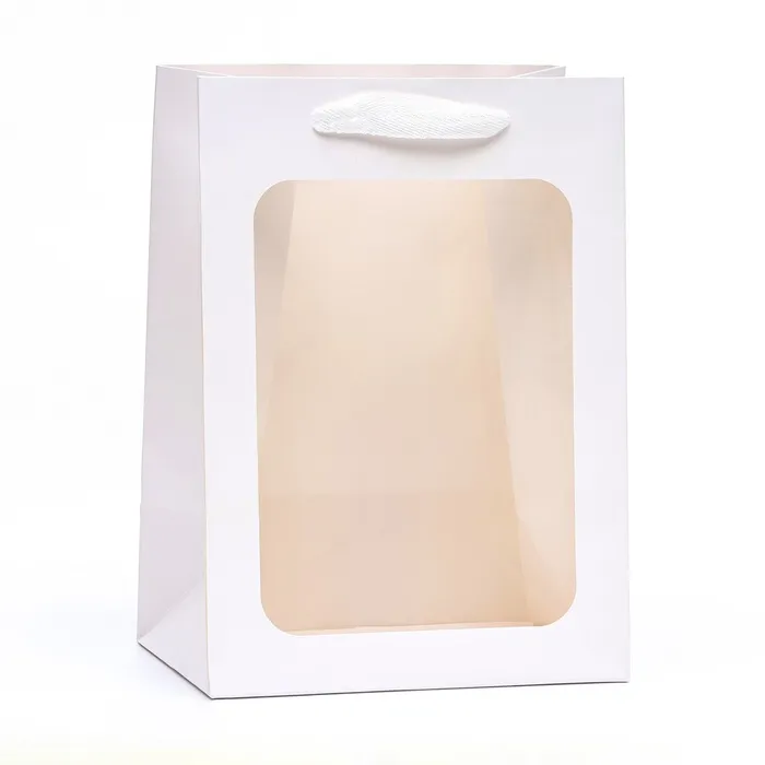 Пакет подарочный, с окном, 25×18×13 см, белый — Характеристики