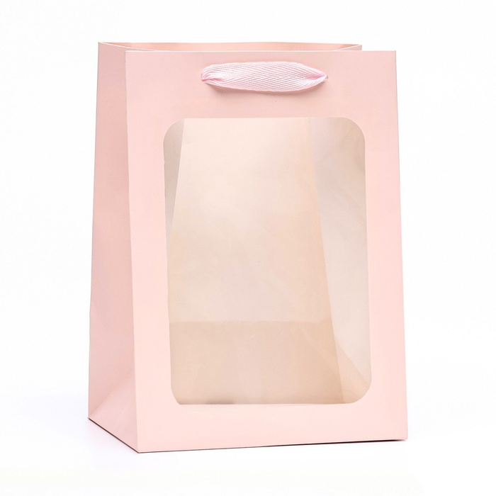 Пакет подарочный, с окном, 25×18×13 см, розовый — Характеристики