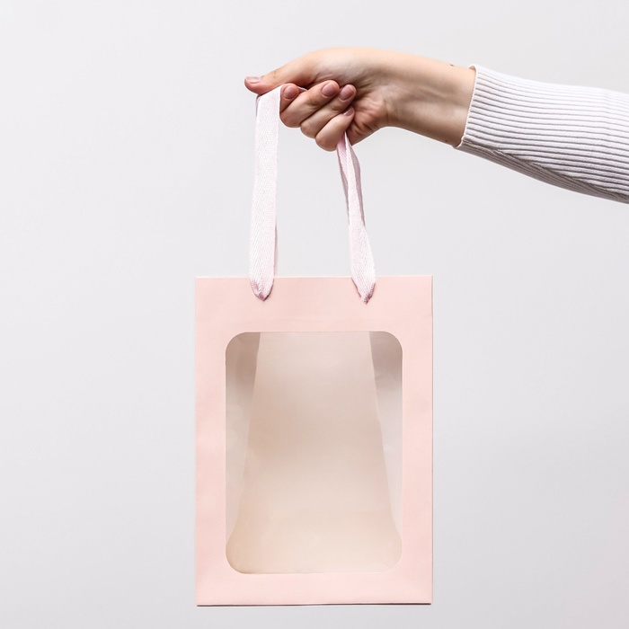 Пакет подарочный, с окном, 25×18×13 см, розовый — Характеристики