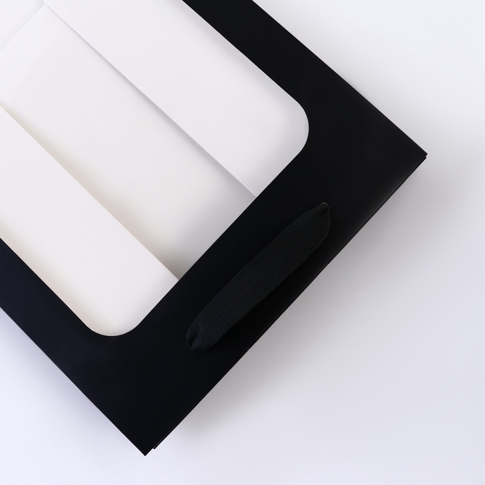 Пакет подарочный, с окном, 30 х 20 х 16 см, черный, 1шт.