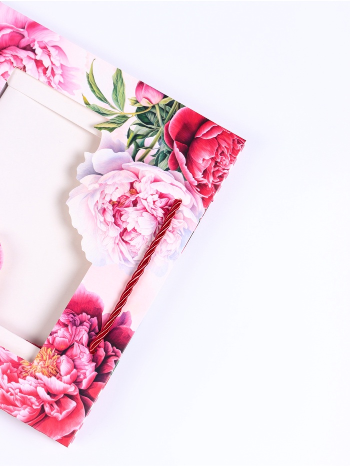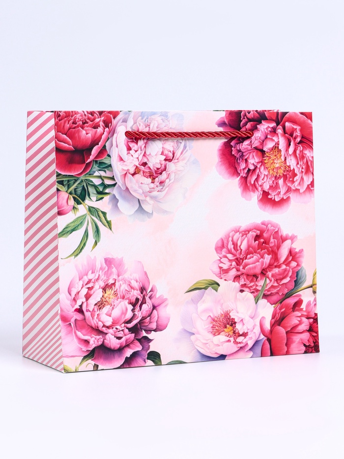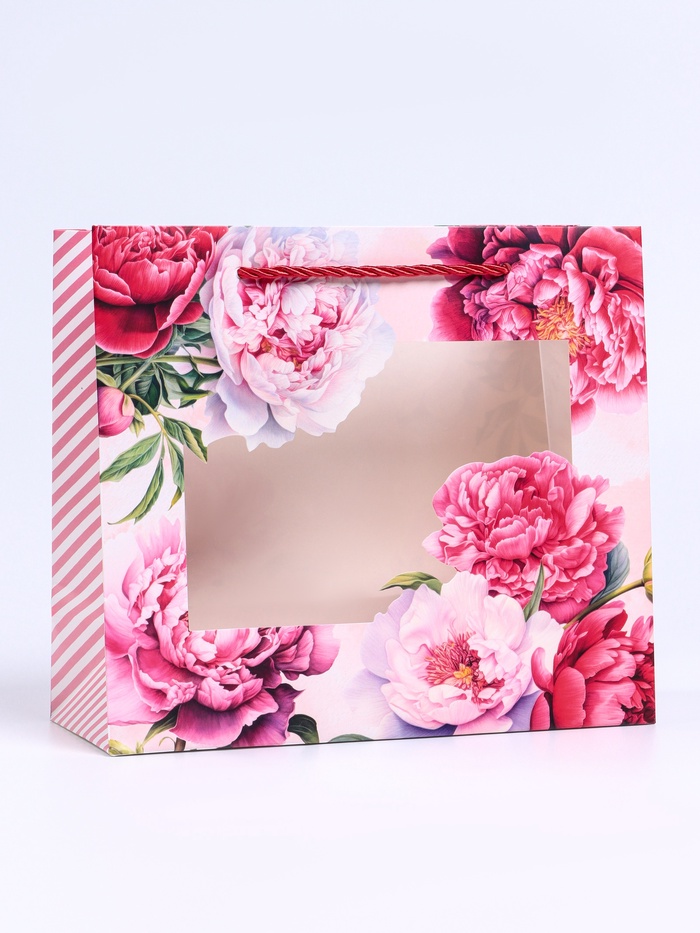Подарочный пакет с окошком в стиле «Пионы» — это изящное решение для упаковки подарков к женским праздникам или торжественным событиям. Его нежный розовый оттенок и цветочный дизайн создают атмосферу весеннего настроения, а удобная форма и прочная конструкция делают его практичным выбором для подарков.