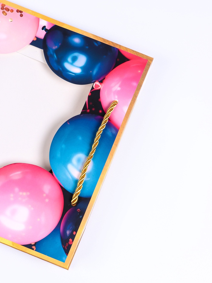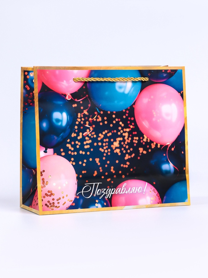 Этот пакет идеально подойдёт для упаковки подарков на день рождения, юбилей или другие праздники. Его праздничный дизайн с шарами и надписями создаёт настроение радости и подчеркивает значимость момента. Это отличный выбор для тех, кто хочет сделать подарок ещё более запоминающимся.