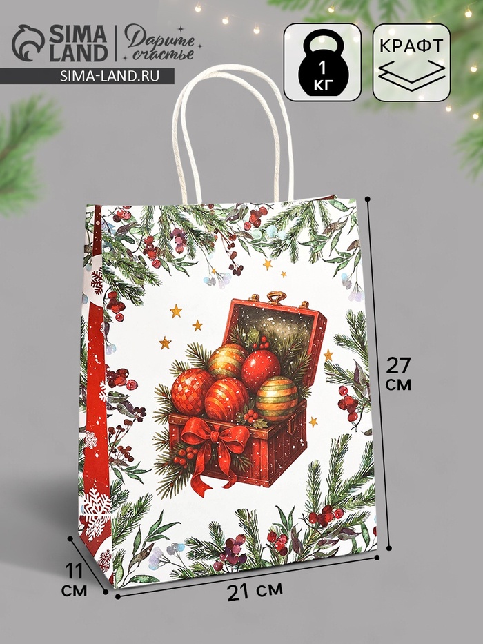 Идеальное начало праздника в деталях: Этот пакет избавляет от необходимости в дополнительном декоре. Его дизайн уже содержит в себе всю необходимую праздничную атрибутику. Просто положите внутрь подарок, и он будет готов к вручению, обещая получателю небольшое, но запоминающееся новогоднее волшебство.