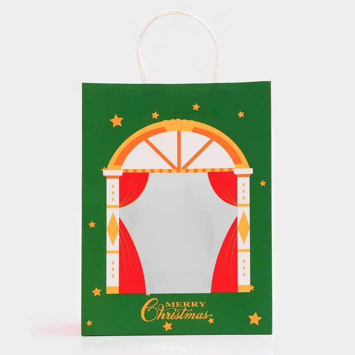 Пакет подарочный с окном «Театр» 26×35×16 см, зеленый — Характеристики