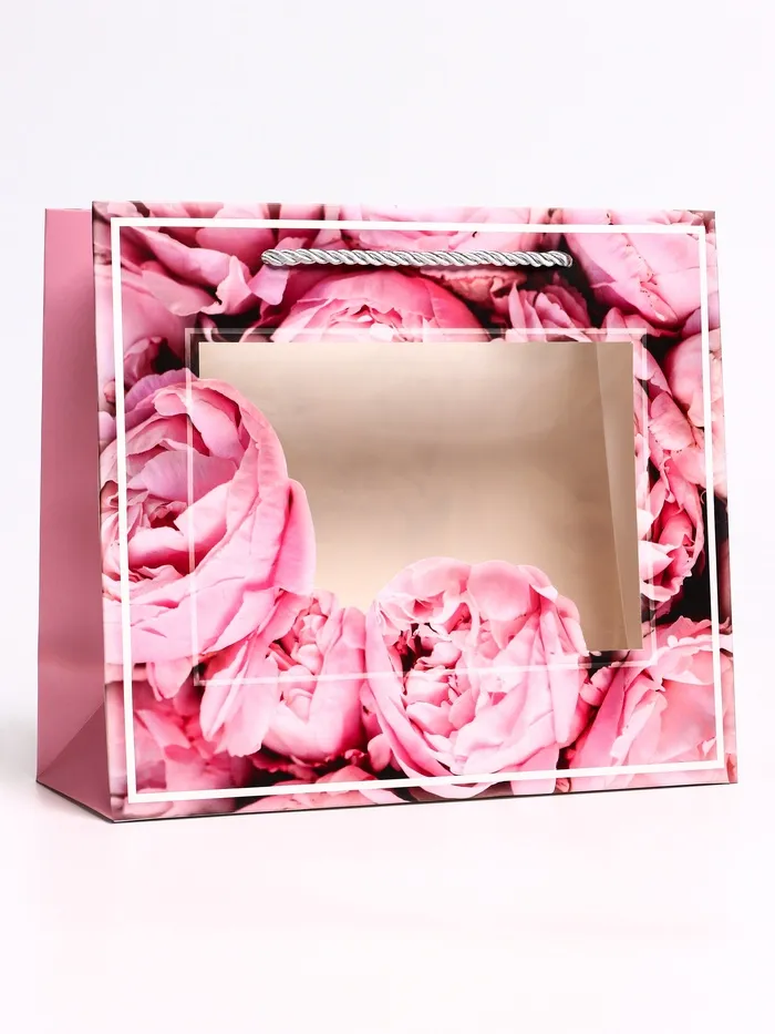 Подарочный пакет с окошком «Цветы» — это элегантное решение для упаковки подарков к женским праздникам, дням рождения или другим торжествам. Его нежный розовый цвет и цветочный дизайн создают атмосферу тепла и радости, делая ваш подарок ещё более приятным и запоминающимся.