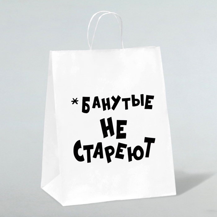 Пакет подарочный с приколами, крафт «Не стареют», белый, 24×14×28 см