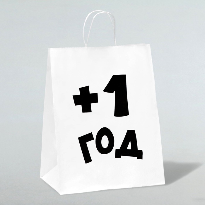 Пакет подарочный с приколами, крафт «Плюс один год», белый, 24×14×28 см — Характеристики