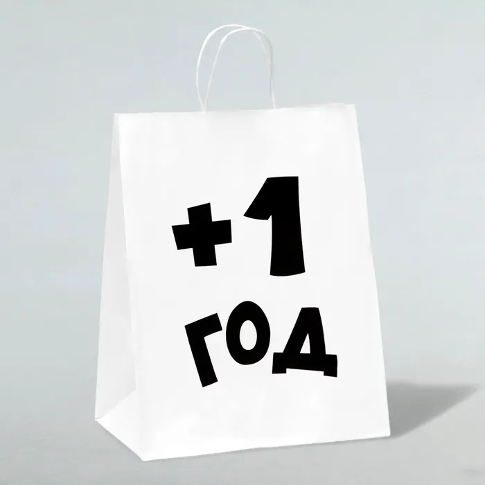 Подарок с юмором для именинников! Крафт-пакет «Плюс один год» — оригинальная упаковка для тех, кто умеет смеяться над возрастом. Плотная крафт-бумага 90 г/м² с кручёным шпагатом выдерживает до 3 кг, а игривая надпись добавит позитива вашему поздравлению.