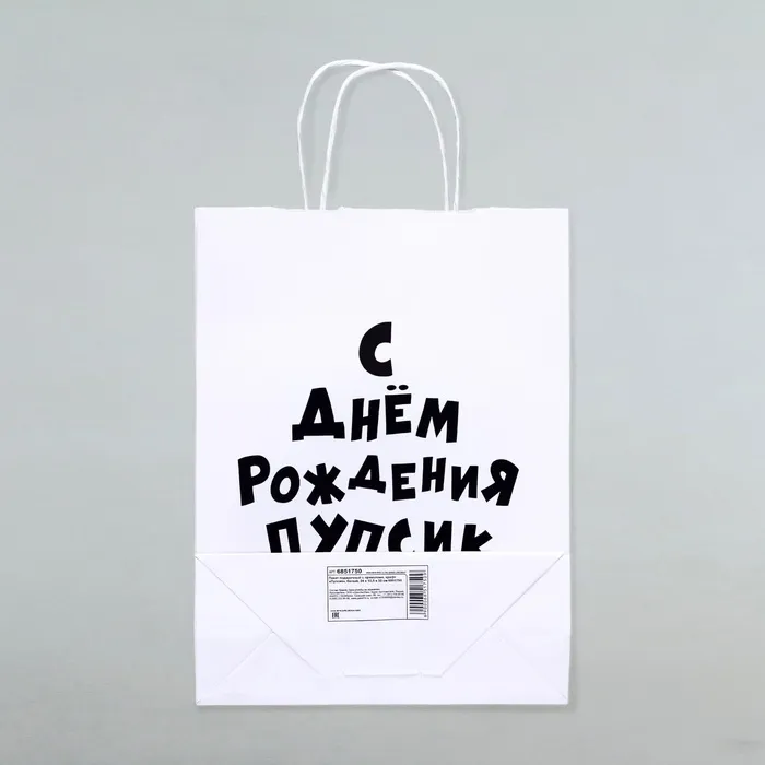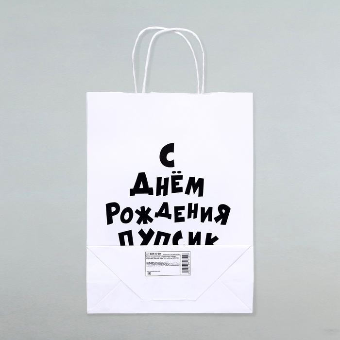 Пакет подарочный с приколами, крафт «Пупсик», белый, 24×14×28 см, 1 шт. — Характеристики