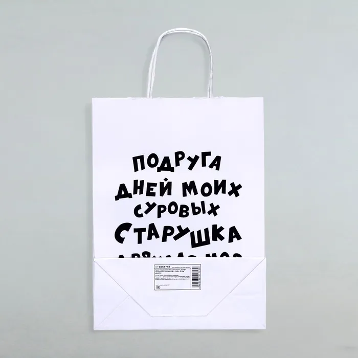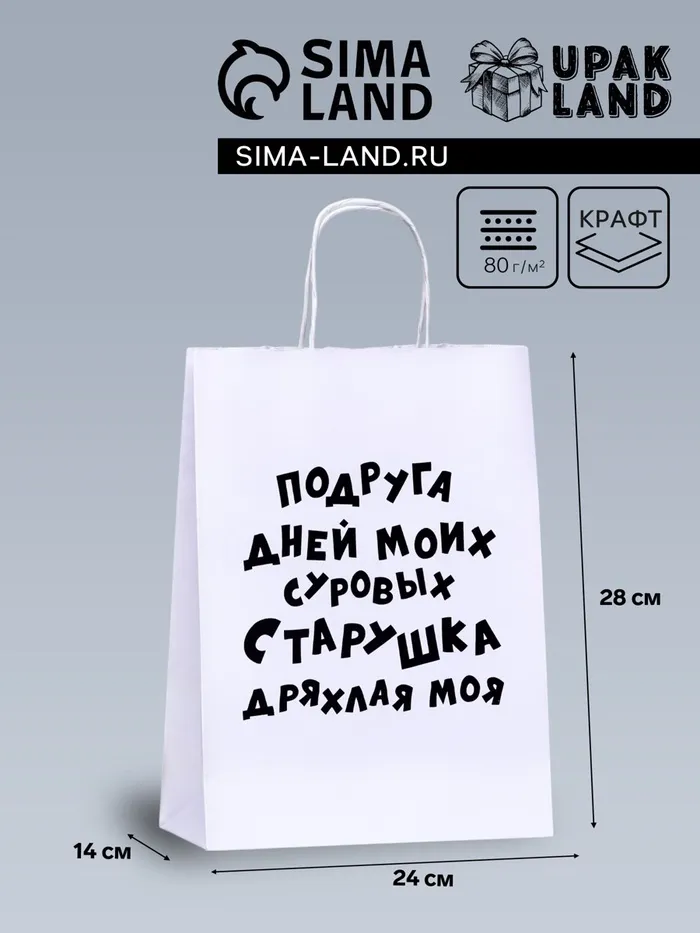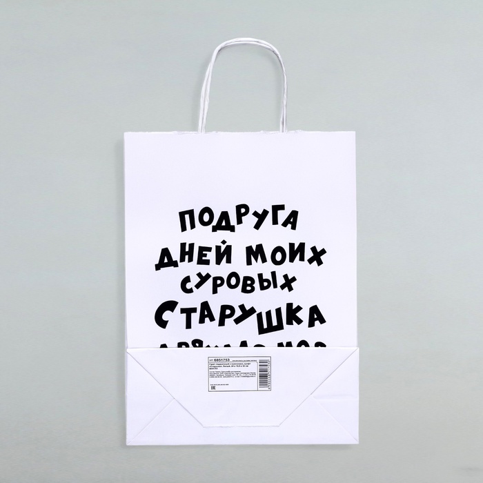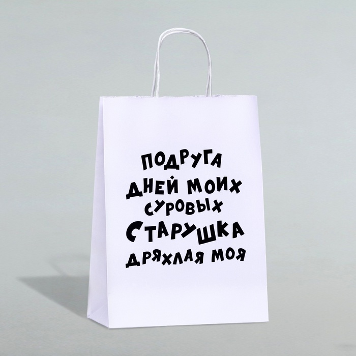 Пакет подарочный с приколами, крафт «Старушка», белый, 24×14×28 см, 1 шт. — Характеристики