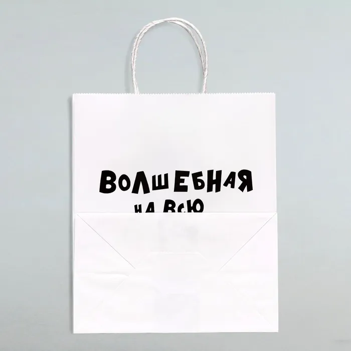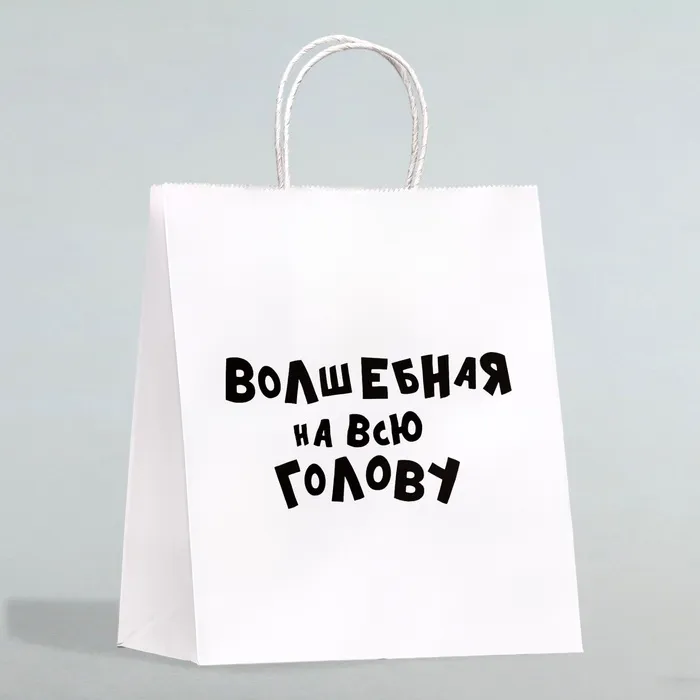 Упаковка с характером для особенных подарков! Крафт-пакет «Волшебная на всю голову» — оригинальный способ упаковать подарок с намёком на магию. Плотная крафт-бумага с кручёным шпагатом выдерживает до 3 кг, а игривая надпись добавляет загадочности.