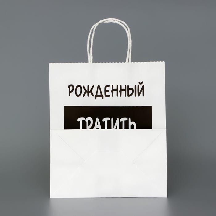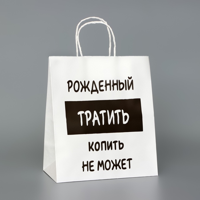 Пакет подарочный с приколами,«Рожденный тратить копить не может», белый, 24×14×28 см — Характеристики