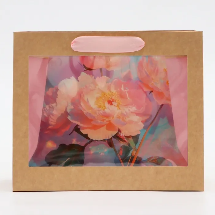 Пакет подарочный с PVC окном, «Пионы», 24×11×20 см — Характеристики