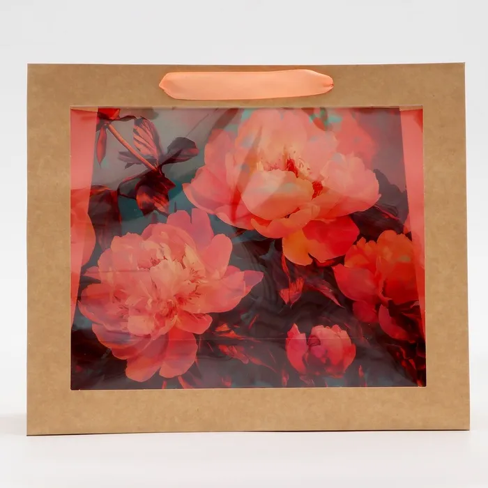Окно из ПВХ обеспечивает прозрачность и позволяет видеть содержимое пакета, не открывая его. Внутренняя стенка пакета украшена ярким рисунком, который добавляет эстетическую привлекательность и привлекает внимание потенциальных покупателей.