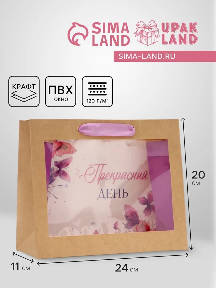 Пакет подарочный с PVC окном, «Прекрасный день», 24×11×20 см — Характеристики