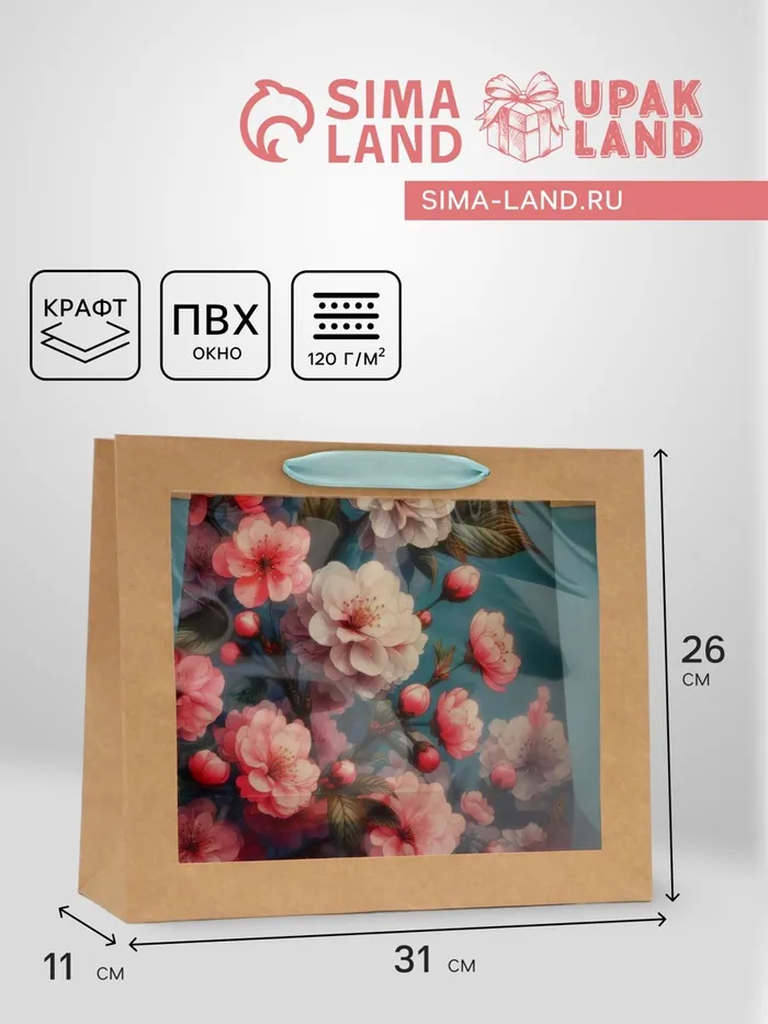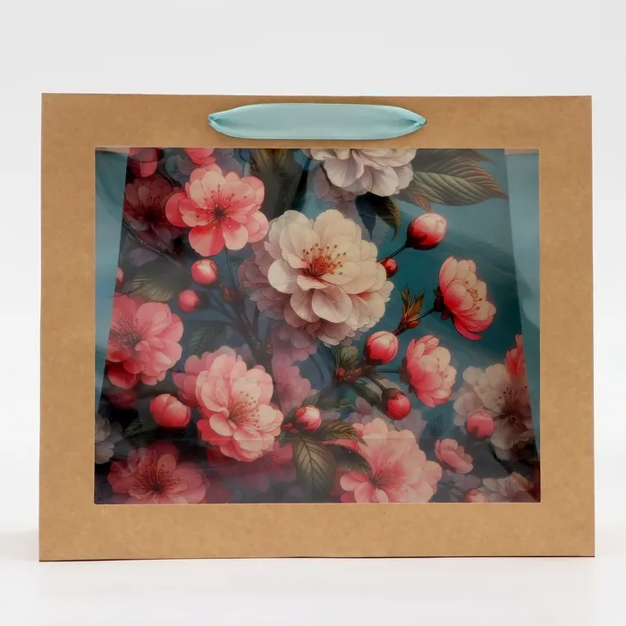 Пакет подарочный с PVC окном, «Цветы», 31×11×26 см — Характеристики