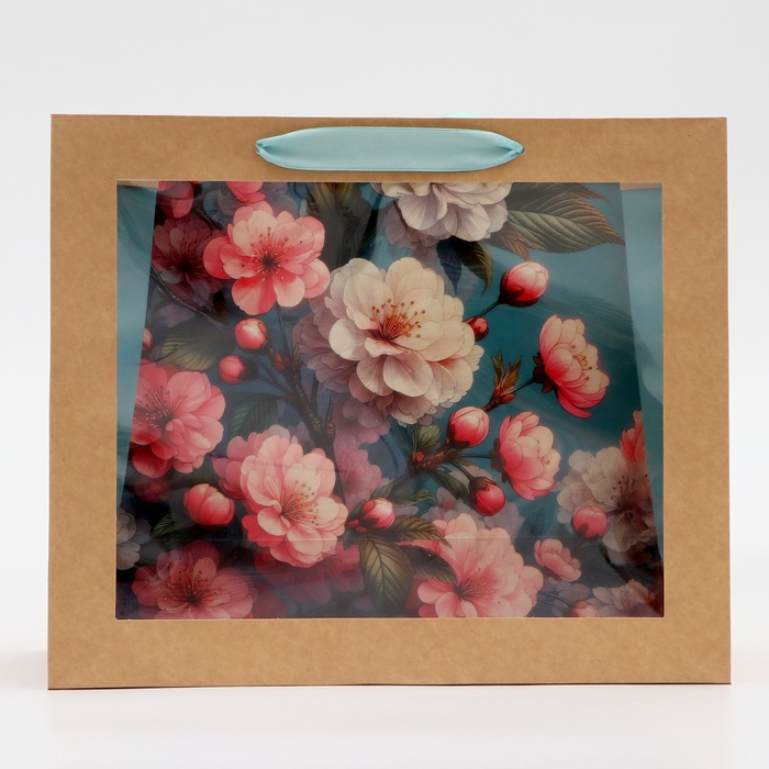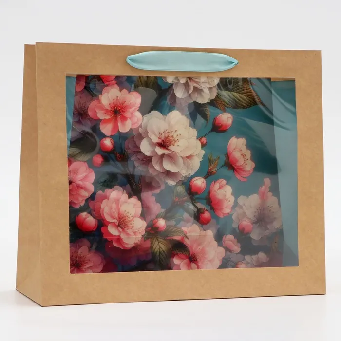 Пакет подарочный с PVC окном, «Цветы», 31×11×26 см
