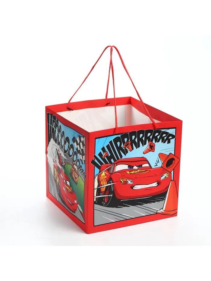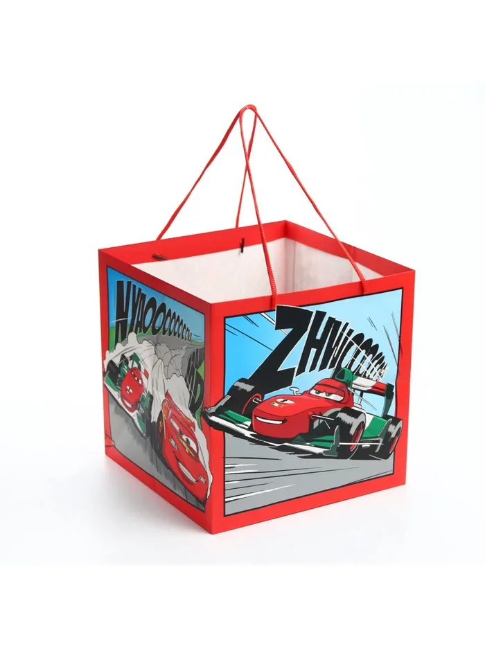 Пакет подарочный с широким дном, 30х30х30 см, Тачки — Характеристики