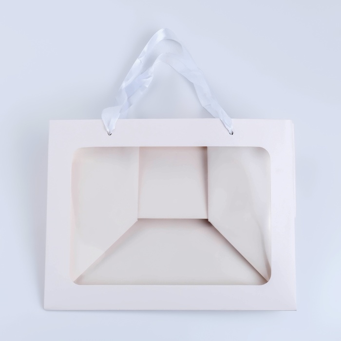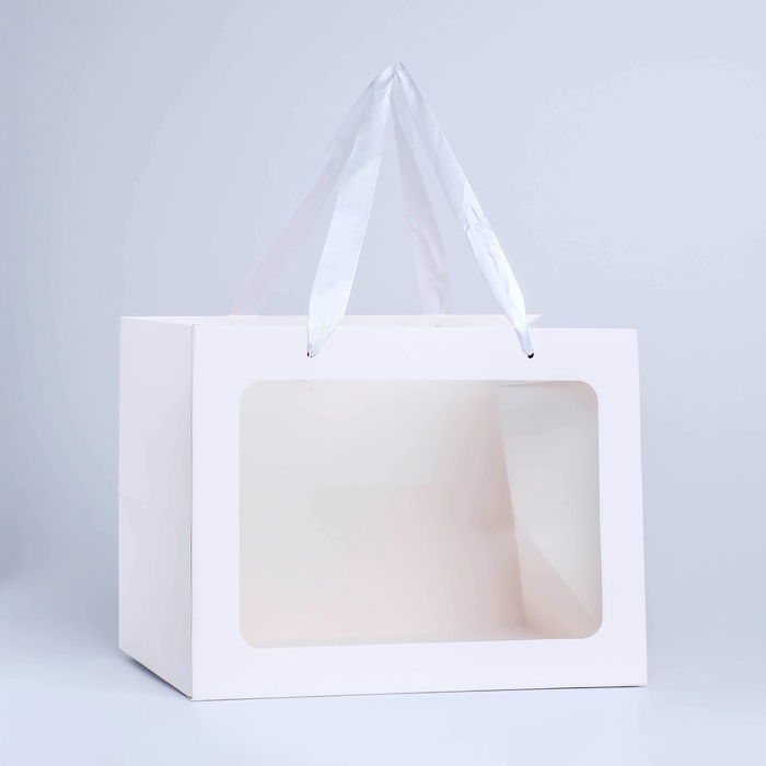 Пакет подарочный с широким дном и окном 25×19×18 см, белый — Характеристики