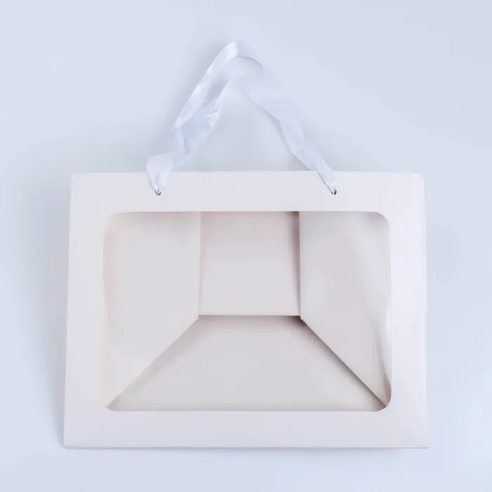 Пакет подарочный с широким дном и окном 25×19×18 см, белый