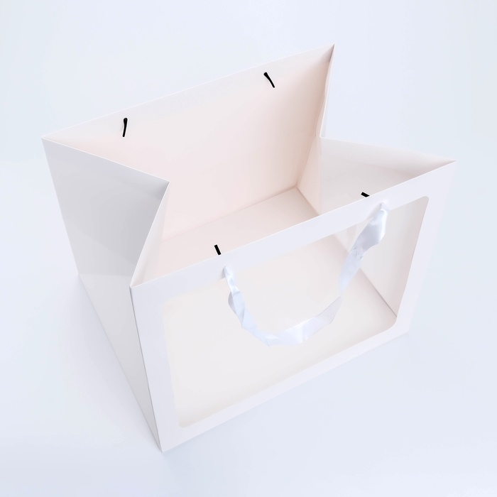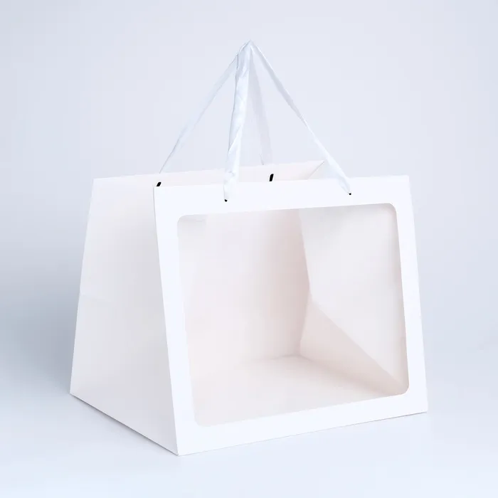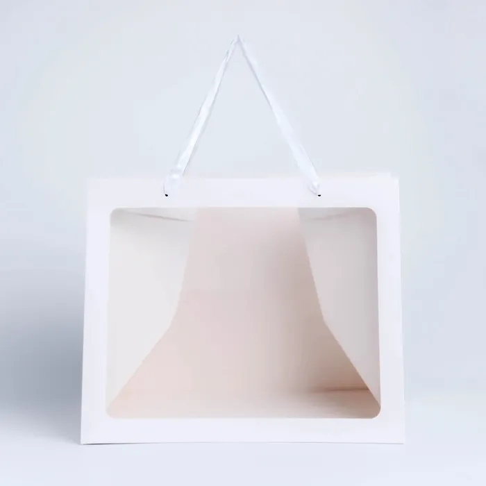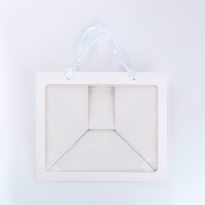 Пакет подарочный с широким дном и окном 35×29×28 см, белый — Характеристики