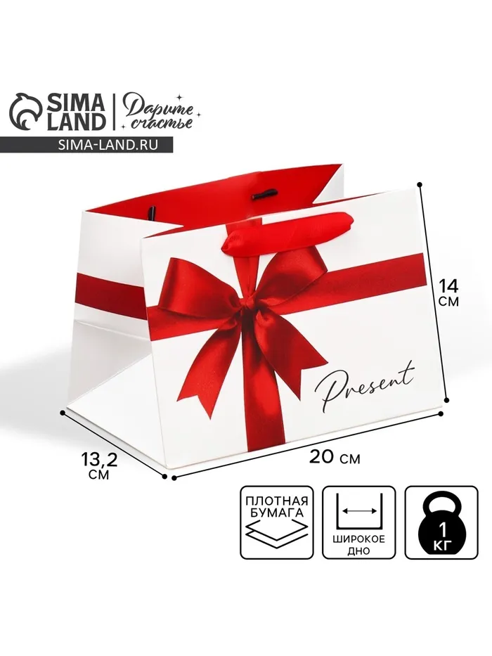 Пакет подарочный с широким дном, упаковка, «Подарок», 20 х 14 х 13 см — Характеристики