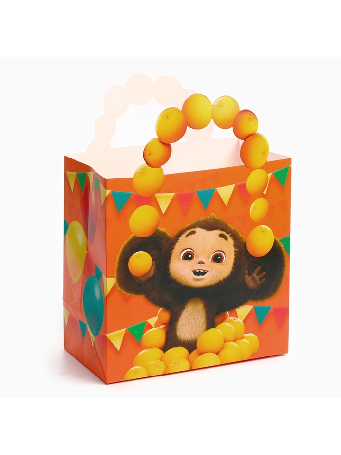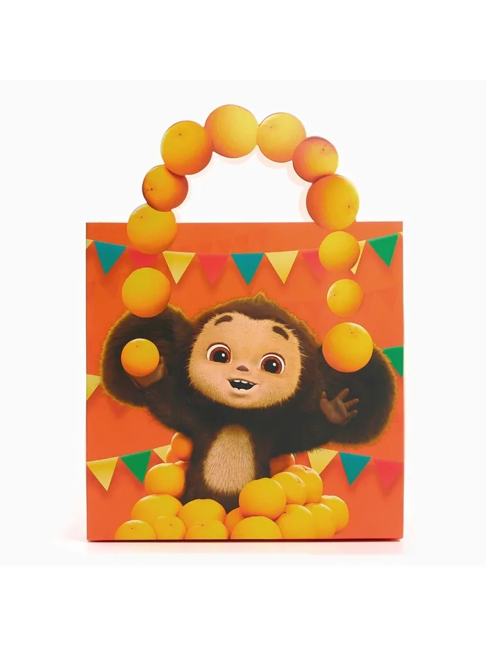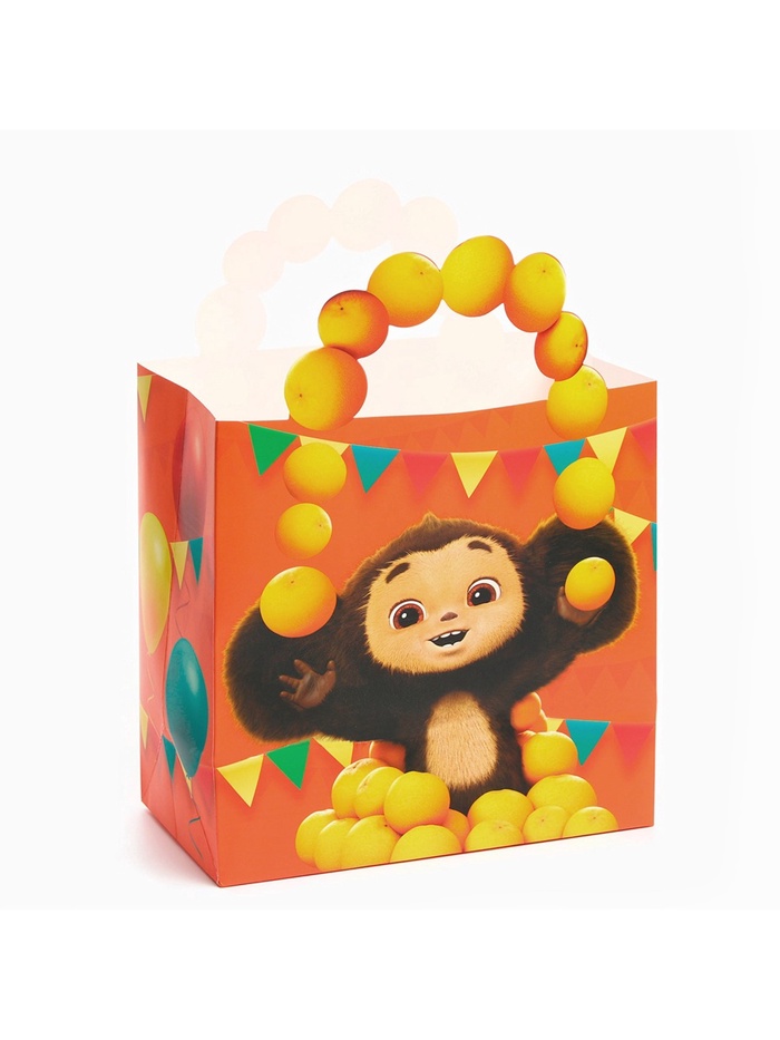 Пакет подарочный с упаковочной бумагой тишью, 22х22х12 см, Чебурашка — Характеристики
