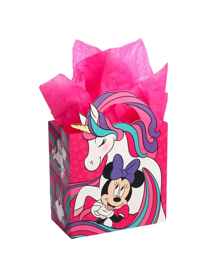 Пакет подарочный с упаковочной бумагой тишью, Единорог, 22 х 22 х 12 см, упаковка, Минни Маус — Характеристики