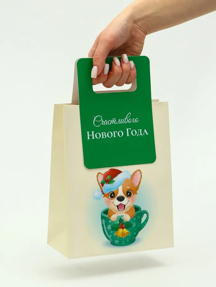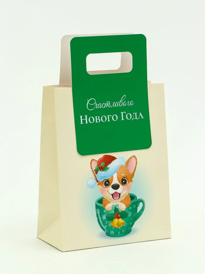 Пакет подарочный с вырубной ручкой «Корги» 18×23×9 см — Характеристики