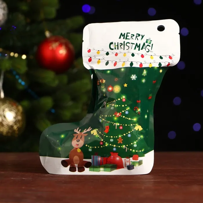 Пакет подарочный новогоднего из пластика с zip-lock застежкой — это стильное и удобное упаковочное решение, которое прекрасно подходит для упаковки подарков и сюрпризов во время новогодних и рождественских праздников.