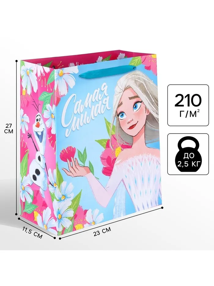 Пакет подарочный «Самая милая», 23×27×11.5 см, упаковка, Холодное сердце — Характеристики