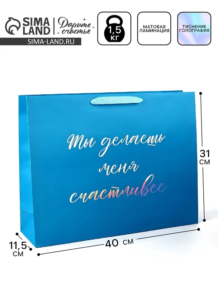 Пакет подарочный «Счастье», голография, L 40 х 11.5 х 31 см — Характеристики