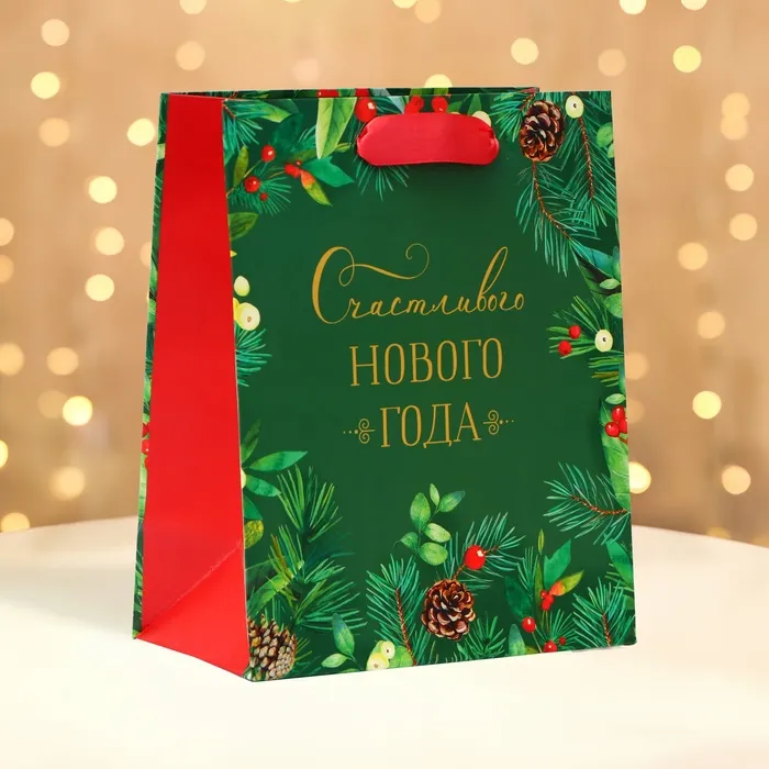 Пакет подарочный «Счастливого Нового года», 18×22.3×10 см — Характеристики